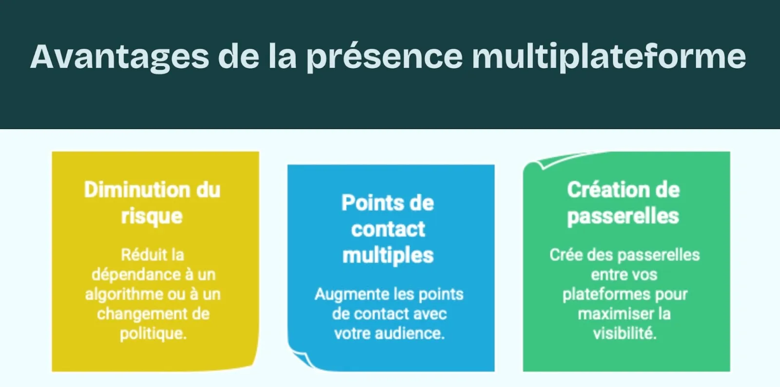 - Créez des passerelles entre vos plateformes pour maximiser votre visibilité.