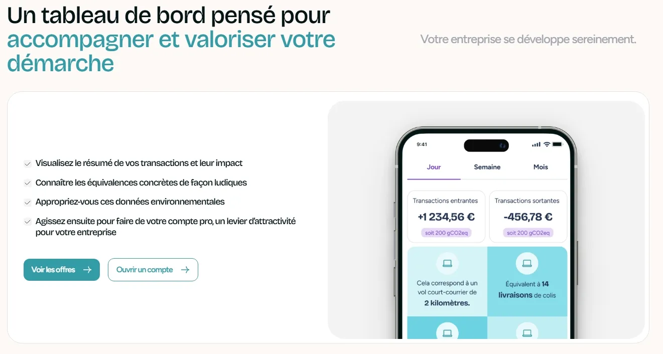 Pour simplifier la gestion de vos projets et suivre l’impact de vos décisions, vous pouvez utiliser Qileo, le premier compte pro éthique en France, qui vous permet de suivre vos finances de manière responsable et engagée.