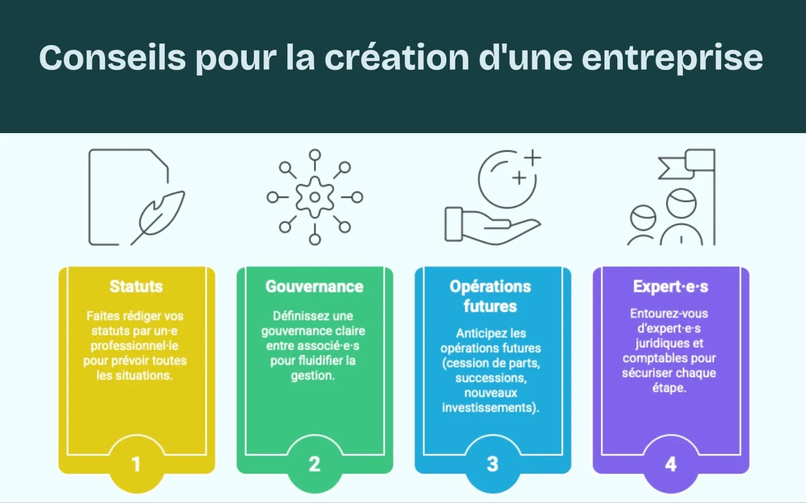 - Entourez-vous d’expert·e·s juridiques et comptables pour sécuriser chaque étape.